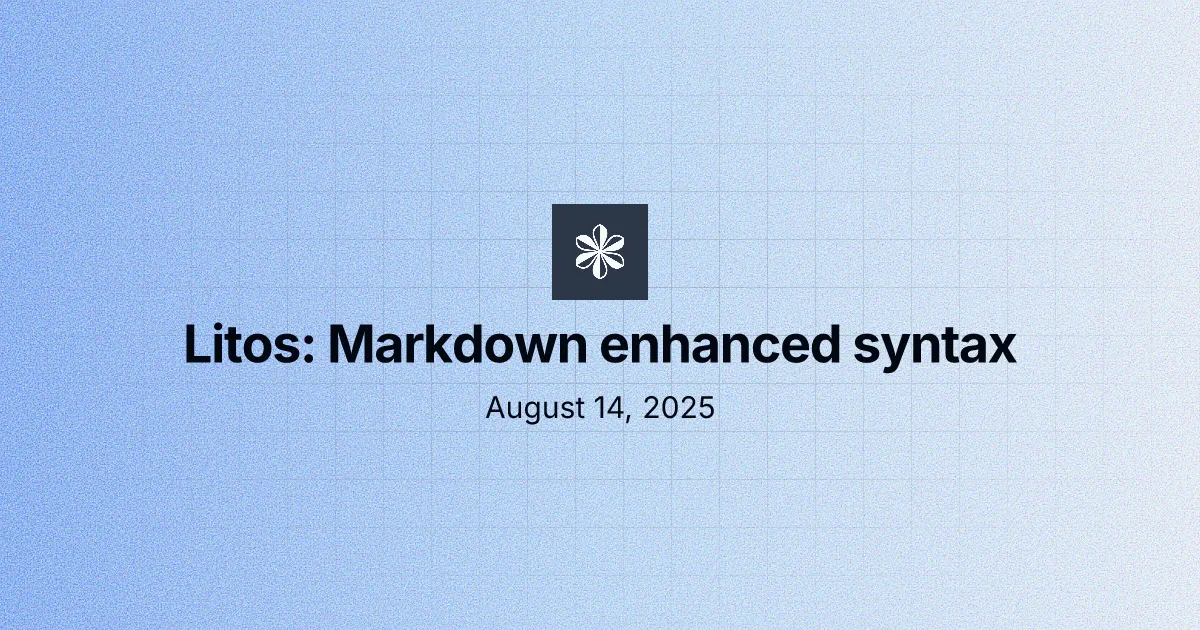 Read more August 12, 2025 Markdown enhanced syntax Enhance Markdown with callouts, Expressive Code blocks, image caption directives, video embeds, styled links, badges, and details. REC LitosDocumentation