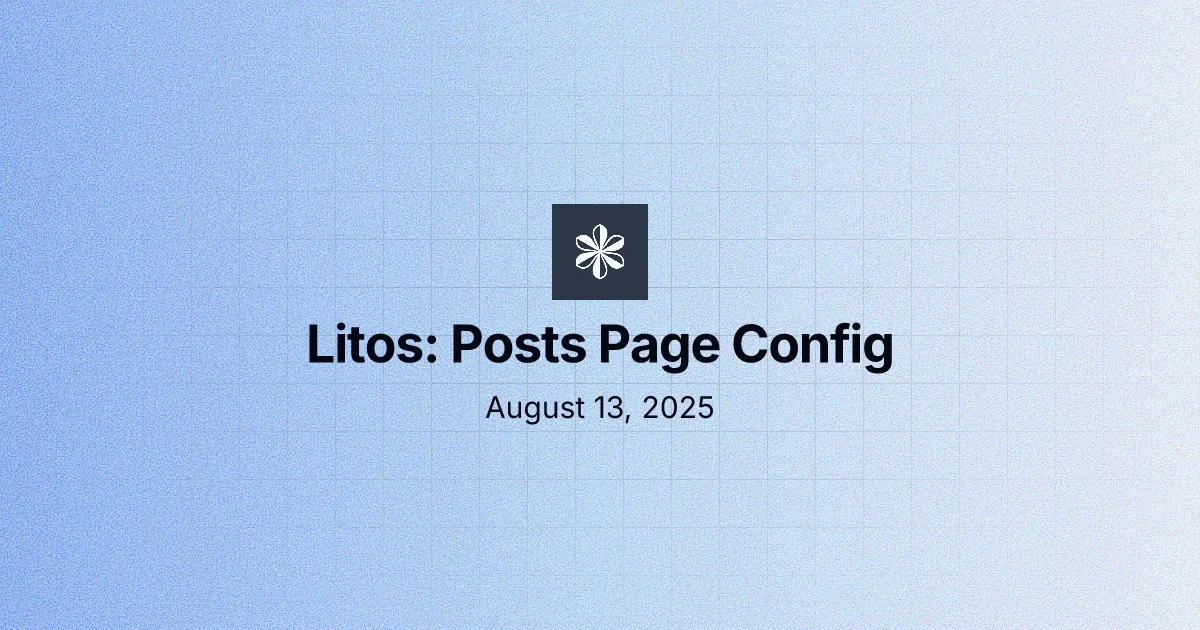 Read more August 13, 2025 Posts Page Config Complete Posts configuration: fields, list styles, post metadata layouts, OG image handling, frontmatter examples, markdown syntax, and expressive-code config. REC LitosDocumentation